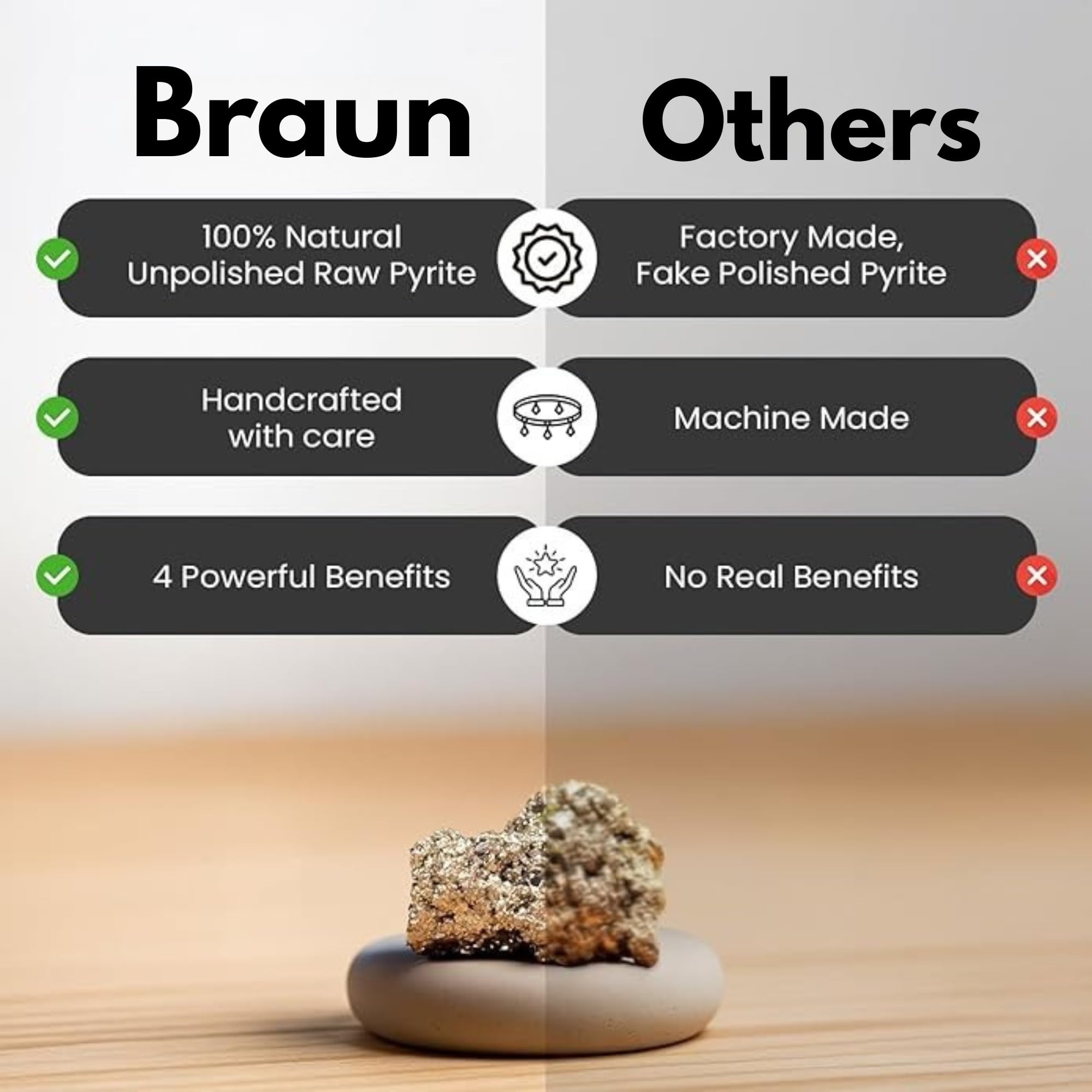 Walk into abundance with the Braun Homes Pyrite Collection — featuring our Raw Pyrite Anklet and Unisex Pyrite Bracelet — each crafted to ground your intentions and elevate your financial journey. Both pieces are designed not just as stylish accessories, but as powerful energy tools that attract prosperity, opportunity, and long-term financial growth. Made from genuine Raw Pyrite, these accessories connect your money-magnet energy directly to the earth, helping you stay focused, aligned, and success-driven. The Pyrite Anklet, perfect for women who want elegance with purpose, enhances every step with clarity, ambition, and grounded confidence. It supports decisive actions toward your goals while creating a strong energetic shield against negativity. Ideal for daily wear, spiritual rituals, or ceremonial use, it keeps you protected and aligned with abundance. The Unisex Pyrite Bracelet is designed for both men and women seeking strength, stability, and elevated personal power. Its bold metallic sheen radiates confidence while promoting financial clarity and inner resilience. Wear it solo or stack it with your favourite pieces — it seamlessly blends style with intention. Together, these Pyrite accessories promote positivity, confidence, and empowered action, making them meaningful gifts for all occasions. Packaged in a premium gift box, they make thoughtful choices whether you’re searching for unique gifts for women, men, birthdays, or special celebrations. Let these beautiful Pyrite pieces be your daily reminder of abundance, action, and aligned success.