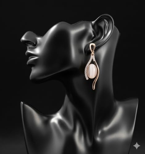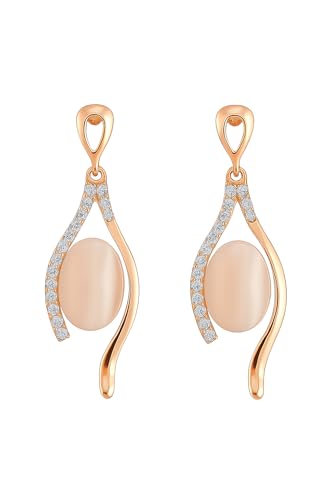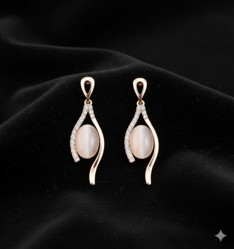 • Eye-Catching Design: Modern drop-style earrings featuring a lustrous oval faux-pearl framed by a graceful rose-gold tone curve studded with sparkling cubic zirconia — perfect to elevate bridal, party or festive looks.