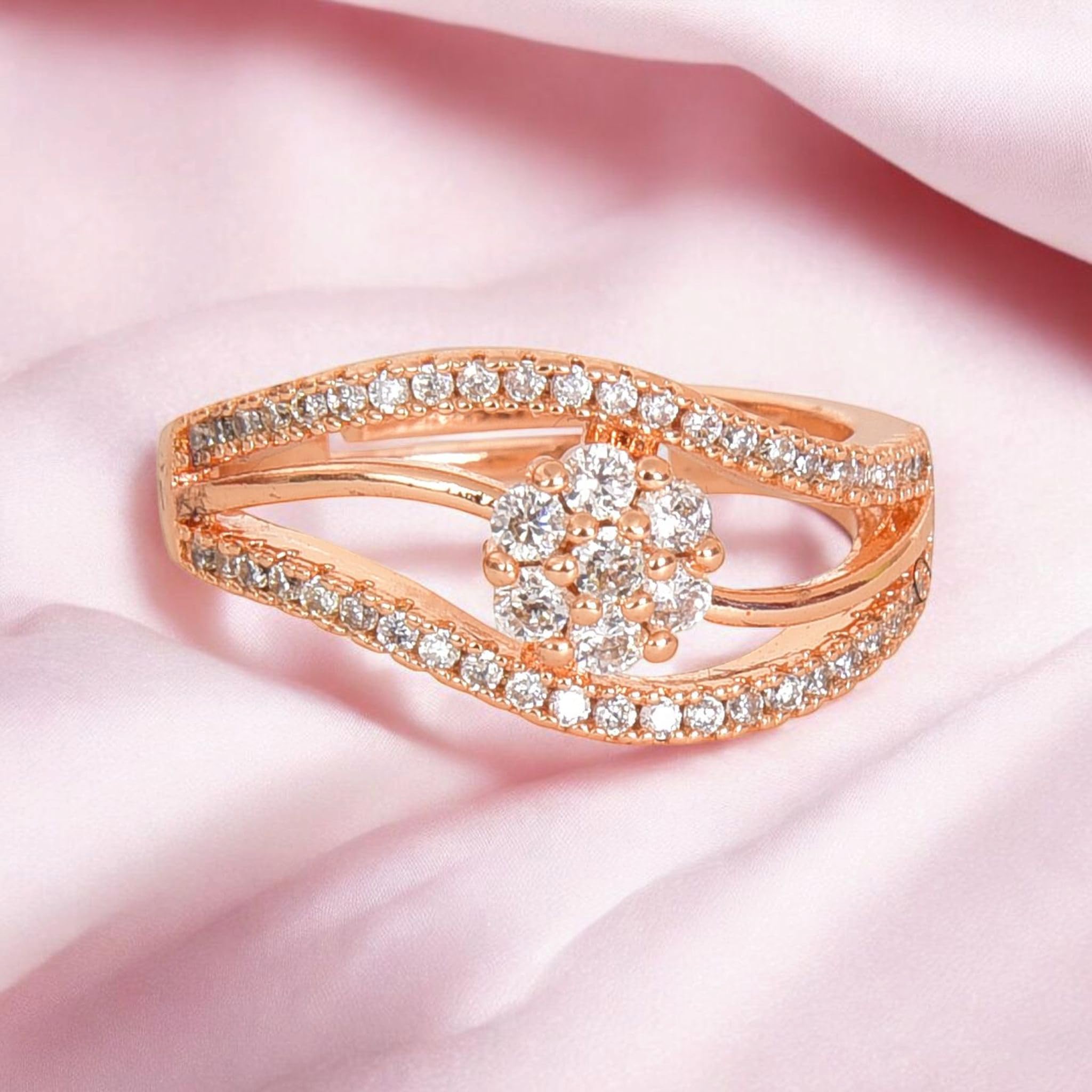 Be the first to review “Nilu’s Collection Rose Gold Plated Elegant American Diamond Studded Sparkling Adjustable Finger Ring for Women and Girls”
