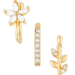 ZAVERI PEARLS Set of 3 Gold Tone Cubic Zirconia Contemporary Brass Clip On Nose Pins For Women-ZPFK17365