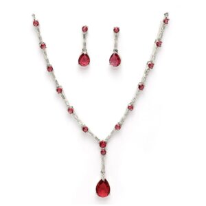 ZENEME Jewelry Luxury Green American Diamond Crytal Sleek Silver Plated Necklace Jewellery Set For Women & GIfts For Girls (Silver Toned Timeless Red Charm)