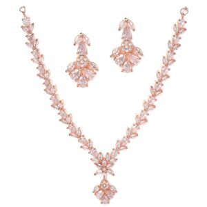 ZENEME Rhodium Plated Silver Toned White American Diamond Studded Necklace With Earring Jewellery Set For Woment and Girl (Rose Gold Multi)