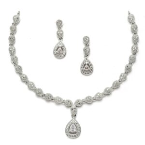 ZENEME Silver Plated Brass American Diamond Studded Rhodium Plated Floral Necklace With Earring Jewellery Set For Women & Gifts For Girls (Crystal American Diamond Necklace set)